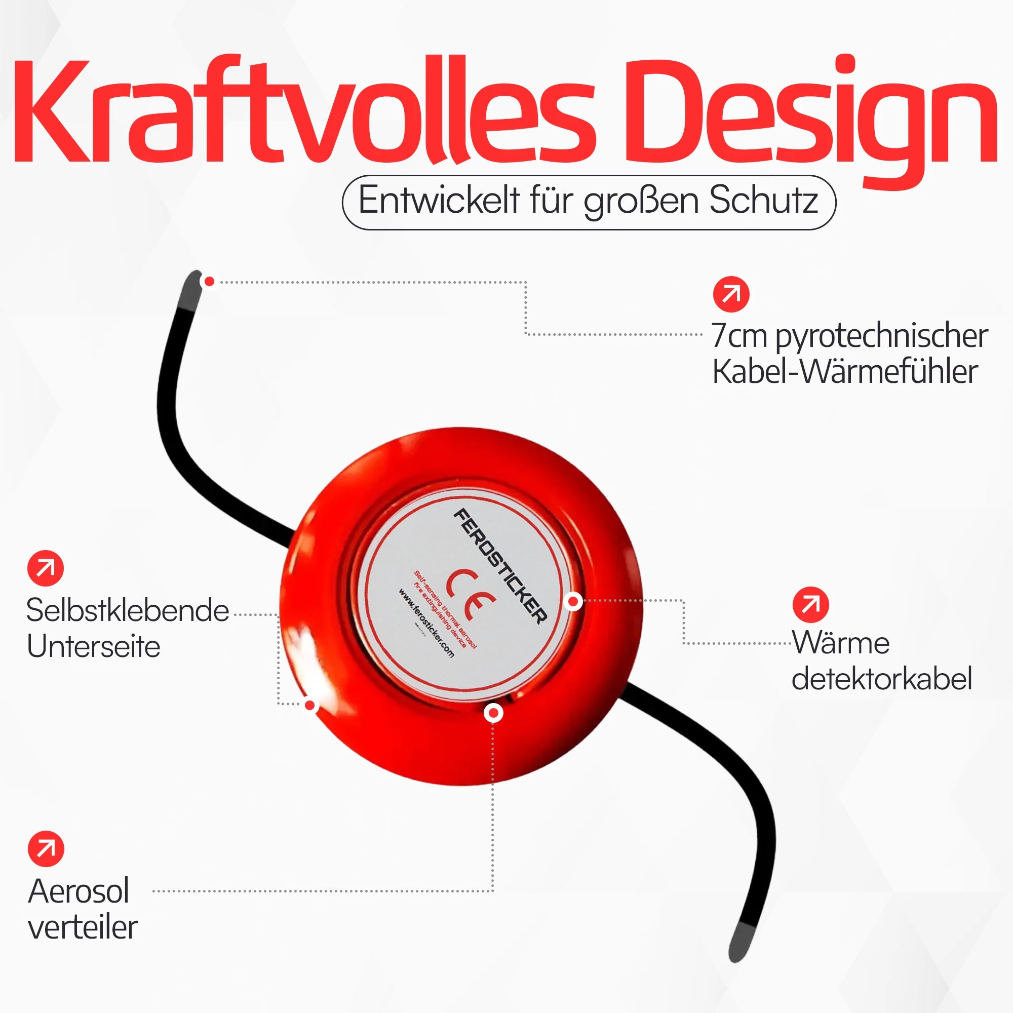 Der Ferosticker F09 ist ein kompakter, wartungsfreier automatischer Feuerlöscher, der sich bei 170ºC ±10ºC (356°F) aktiviert und sofort ein feuerunterdrückendes Aerosol freisetzt, um Brände in geschlossenen Räumen bis zu 0,9 m³ zu stoppen. Keine Verkabelung, keine Batterien und keine Wartung erforderlich. Installation in Sekunden – einfach abziehen und aufkleben. Kompakt, umweltfreundlich und sicher für Elektronik. Hält bis zu 6 Jahre und schützt vor den Brandklassen A, B, C, E und F. Ideal für Schiffe, große Schalttafeln, Maschinenräume, Sicherungskästen, Traktoren, Mähdrescher, Wohnmobile, Lithium-Batteriespeicher, Solargeneratoren und Industrieanlagen.