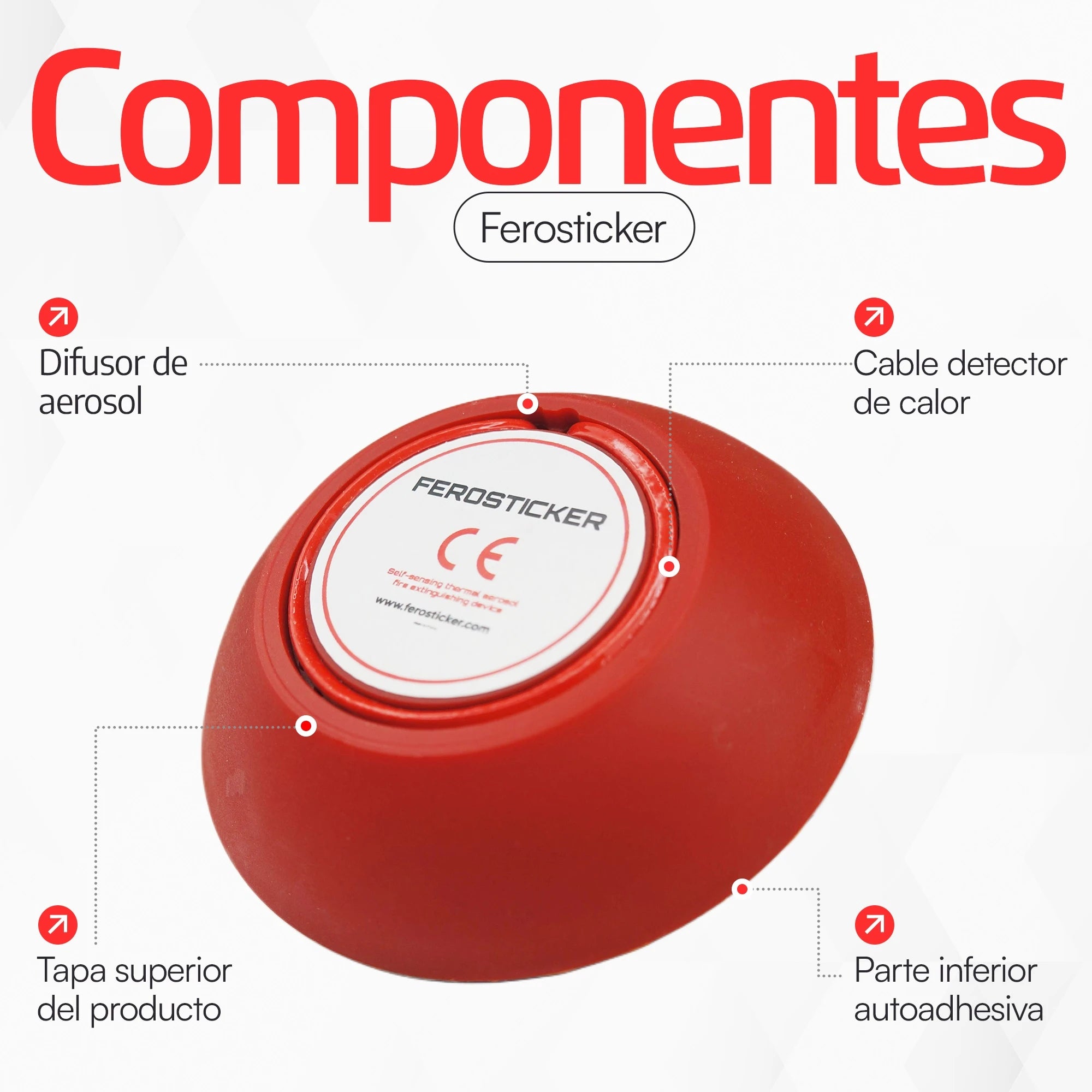 El Ferosticker F03 es un innovador extintor automático sin mantenimiento que se activa a 170 °C ±10 °C para extinguir incendios al instante en espacios cerrados de hasta 0,3 m³. No requiere cableado, baterías ni mantenimiento. Se instala en segundos: simplemente despegar y pegar. Compacto, ecológico y seguro para dispositivos electrónicos. Dura hasta 6 años y protege contra incendios de las clases A, B, C, E y F. Ideal para cajas de fusibles, baterías, vehículos y más.