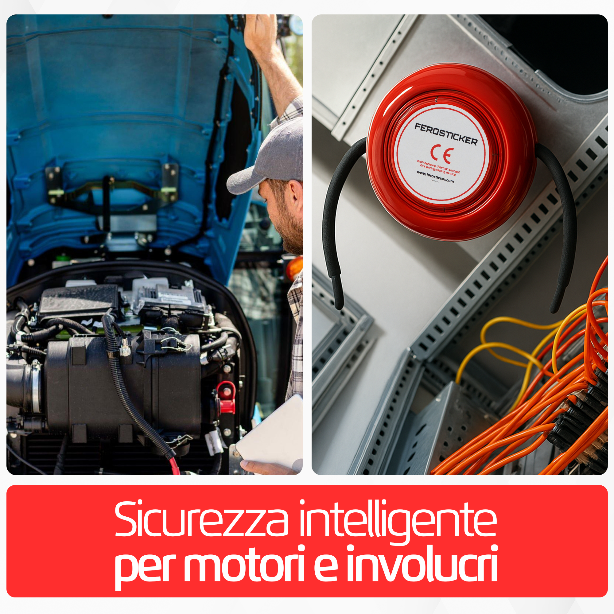 Il Ferosticker F09 è un estintore automatico compatto e senza manutenzione, progettato per attivarsi a 170ºC ±10ºC (356°F). Rilascia istantaneamente un aerosol estinguente che interrompe la combustione in spazi chiusi fino a 0,9 m³. Non richiede cablaggi, batterie o manutenzione. Si installa in pochi secondi: basta staccare e applicare. Compatto, ecologico e sicuro per l’elettronica. Ha una durata fino a 6 anni e protegge contro incendi di classe A, B, C, E e F. Ideale per navi, grandi quadri elettrici, sale macchine, quadri di distribuzione, trattori, mietitrebbie, camper, unità di stoccaggio batterie al litio, generatori solari e macchinari industriali.